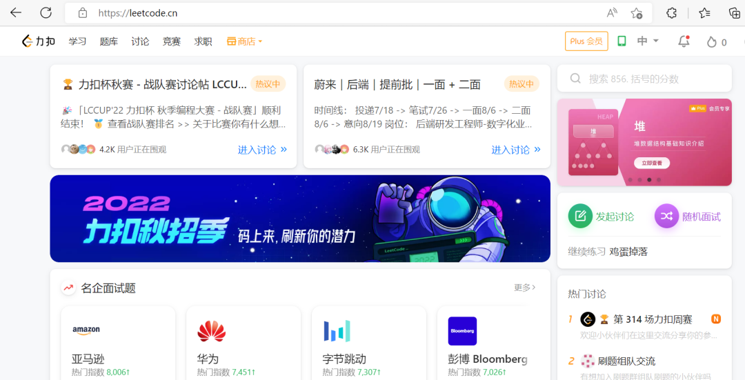力扣是一个在线评测题库,收录了很多大型IT公司(比如谷歌、微软、亚马逊、甲骨文、华为、阿里巴巴、腾讯、百度、字节跳动、美团等)的面试题。力扣是程序员找工作准备面试时最常用的做算法题的网站。力扣有很多经典的题,比如CSP-J2022第一轮的第2道阅读程序题,就是力扣上的第887题《鸡蛋掉落》。力扣中国的网址是:www.leetcode.cn。