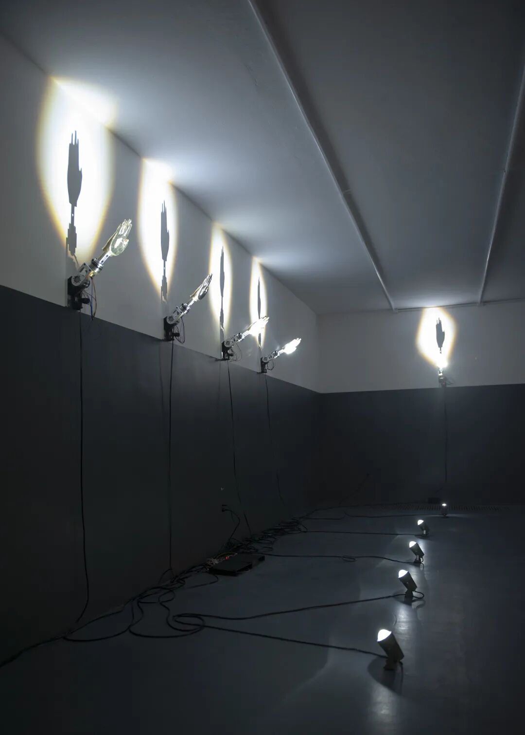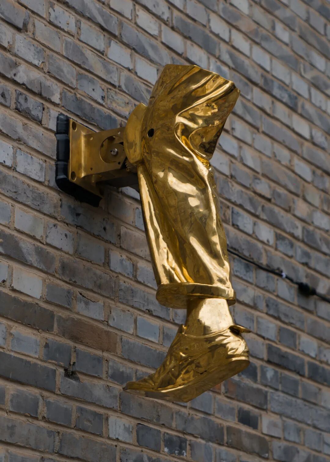 The artist has created a 3D scan of his own leg, and the cast bronze right leg kicking and punching the wall repeatedly with a muffled sound. The toe of the foot hammers against the wall, leaving the word "sorry" in its mark. It is a futile struggle in a state of exception, overwhelmed with stubbornness and obstinacy. An obvious question: how long does it take for one leg to kick down this wall.