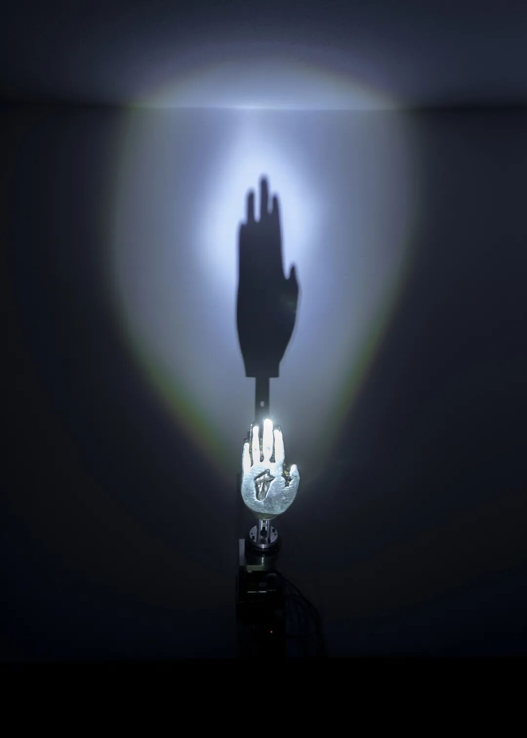 45度角笔直耸立的机械臂上长出金色的手掌。我的律令是:来到我的领域,就会俘获这金色的光芒。最忠实的信徒还是最顽皮的儿童?鼓起你的勇气,直视我!让我轻抚你的视网膜。