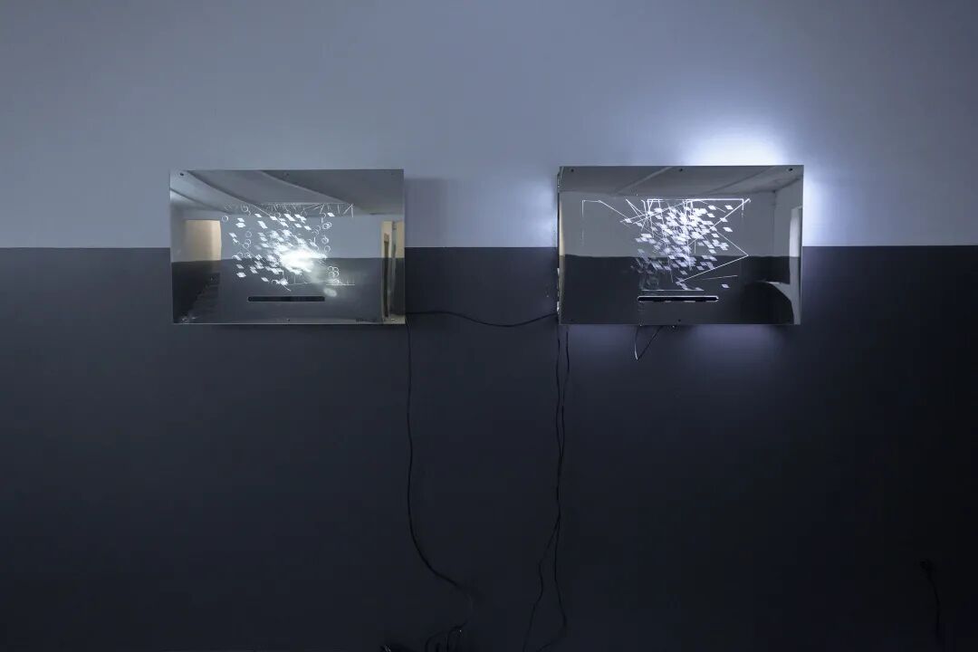 Please use this work in the following ways: 1. stand straight up to 1 metre in front of the work; 2. look at the image in the mirror; 3. move your eyes slowly, always aware of the scratches on the mirror surface; 4. try to stop and stare at any point (ps. wait, wait, please be more patient).