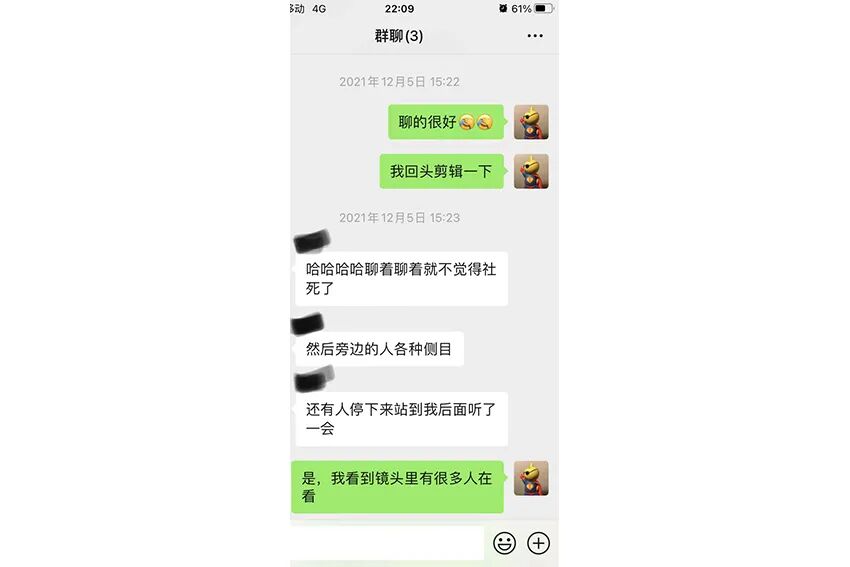 从2019年以来,我个人的社会互动项目的参与者都是自己生活中遇到的朋友。“邀请生活中的朋友参与艺术项目”这个想法,源自于对本土传统社会关系的理解,并且希望通过这种方式实现一种自我组织形式。在我看来,艺术不能抛弃真实的生活实践,更不应该是对参与者的一次性消费。所以我挺喜欢和身边非艺术领域的朋友畅谈艺术,很多时候项目就是这样促成的,这也让我们彼此更加熟络、加深对彼此的了解。艺术让我们走得更近了。