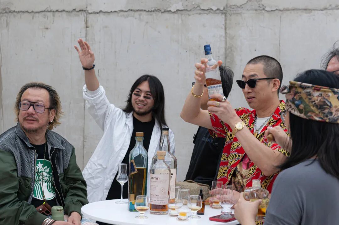 A: It is fun. A long time ago, I peed once and noticed the color was much darker than usual, much like the color of a bottle of sherry cask whiskey I had just drunk. So I peed in the empty bottle of whiskey and put it on the liquor cabinet with the real whiskey. Later, when I talked to Feng Xi about the Siphon project, I said, "Why don't we do a whiskey-tasting party?" Because the project was originally very short, we could take the event out of the regular exhibition and make it into the exhibition itself, which would match the project's characteristics and serve as the opening of the entire Siphon project.