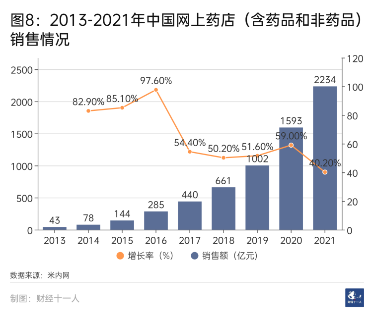 图6-图8显示,从2013年开始,网上药店的销售额占比不断攀升。这个趋势仍会延续。![]()