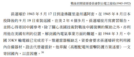 在台电工作的接近20年里,孙运璿使得台湾的电力普及率达到了99.7%,超过了当时的韩国和日本。