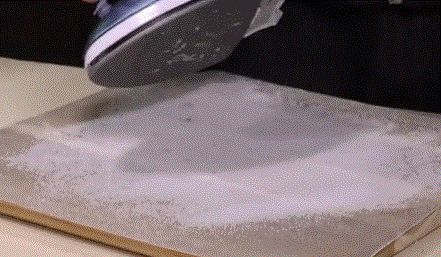 3、盐会把熨板上的残留物吸附到纸上去,锈迹一扫而净,这样就不用担心衣服被锈迹熨脏啦!