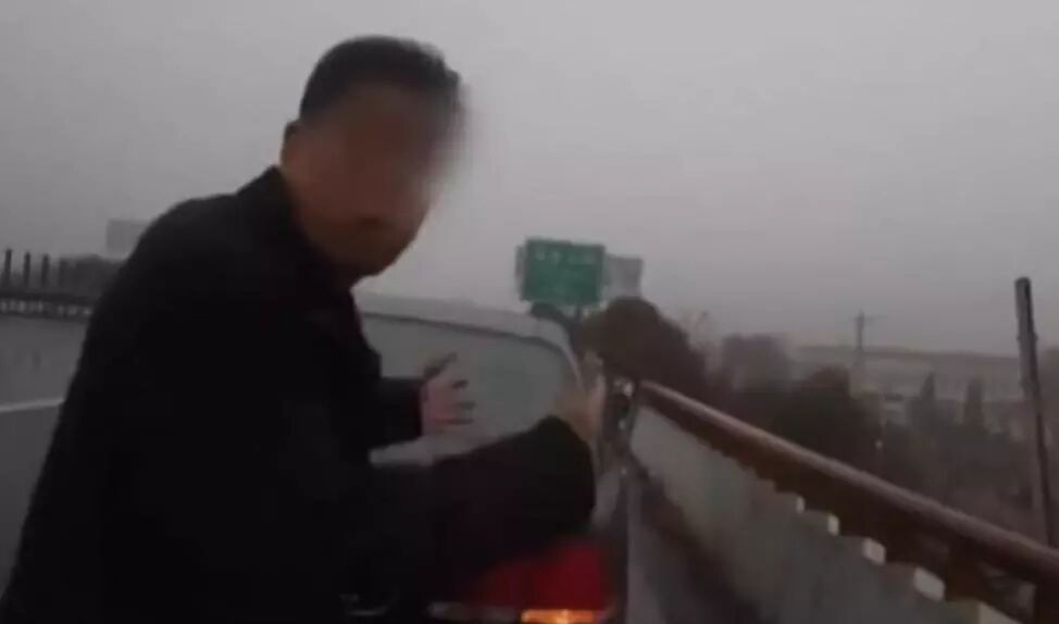一男子因把车停在了应急车道