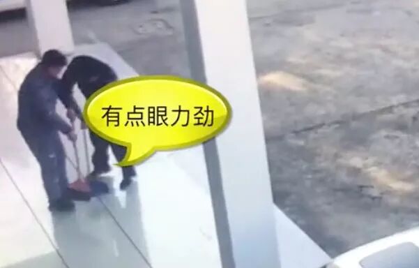 男子就拿起扫帚开始扫地