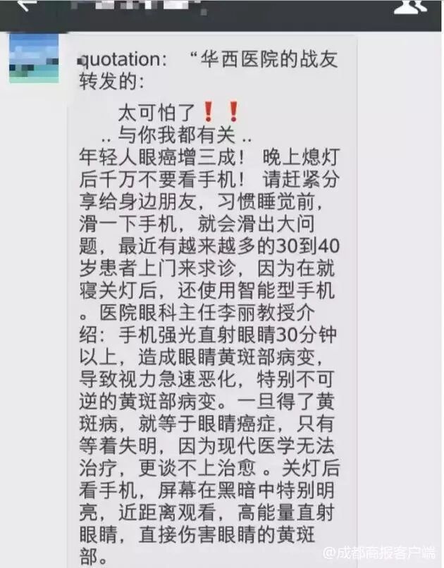 睡前关灯玩手机会得眼癌?“华西医生”忠告刷屏,真相是……