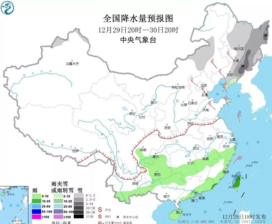 全国天气:内蒙古东部、东北地区、山东半岛等地部分地区有小到中雪或雨夹雪,其中,黑龙江中东部、吉林中部、辽宁北部等地的部分地区大雪。江南中部、华南东部和南部、西南地区东部、台湾岛等地的部分地区有小雨,其中广东东部、台湾岛部分地区中雨或大雨。