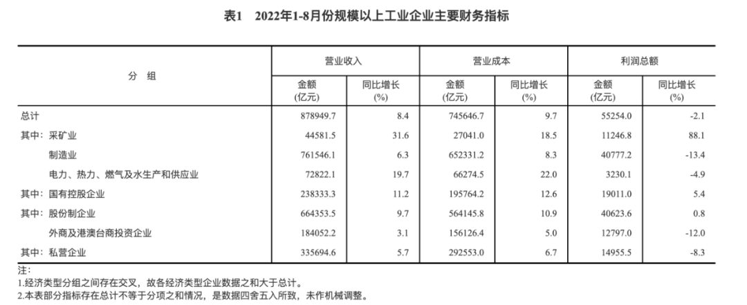 据国家统计局消息,1—8月份,全国规模以上工业企业实现利润总额55254.0亿元,同比下降2.1%。