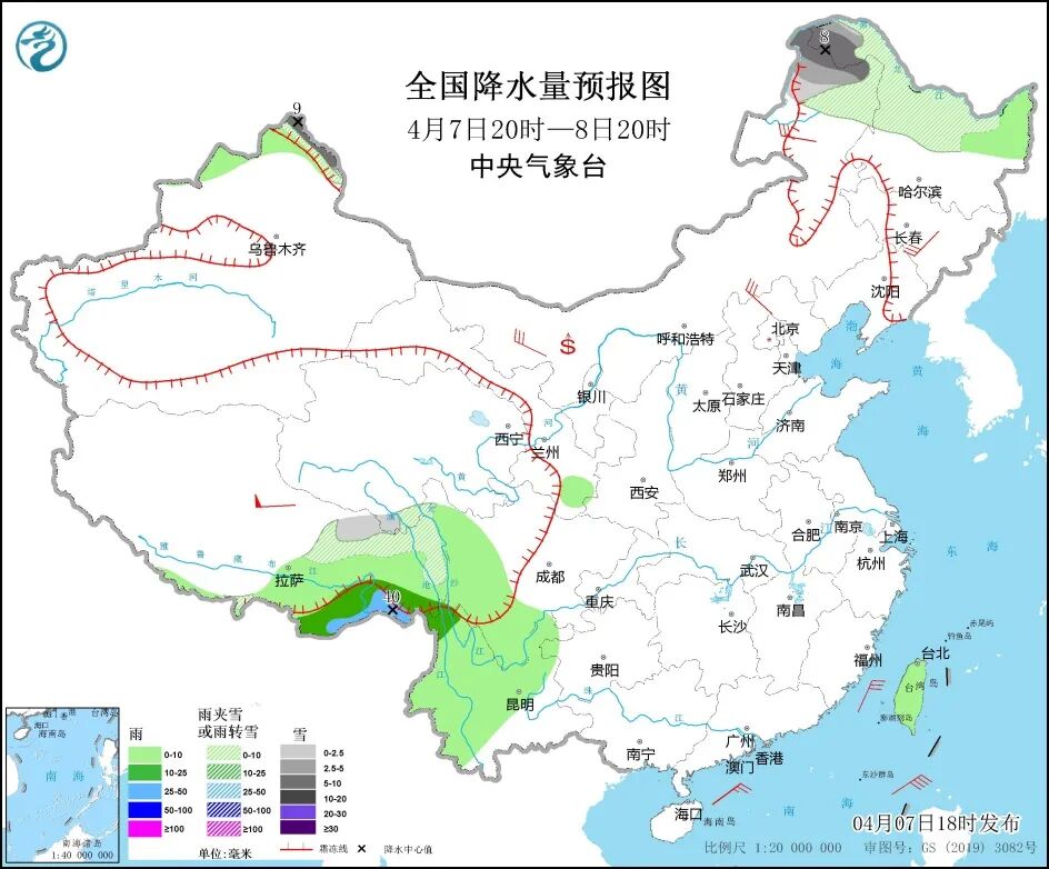 全国天气:内蒙古东北部、黑龙江西北部、新疆北疆北部、西藏东北部等地部分地区有小到中雪或雨夹雪,局地有大雪(5~9毫米)。黑龙江东北部、新疆北疆北部、西藏南部和东部、四川南部、云南西部和北部、台湾岛等地部分地区有小到中雨,其中,西藏东南部局地有大雨(25~40毫米)。内蒙古、东北地区东部、华北北部等地部分地区有5~7级风,西藏北部部分地区有7~8级风。内蒙古西部有扬沙或浮尘天气。