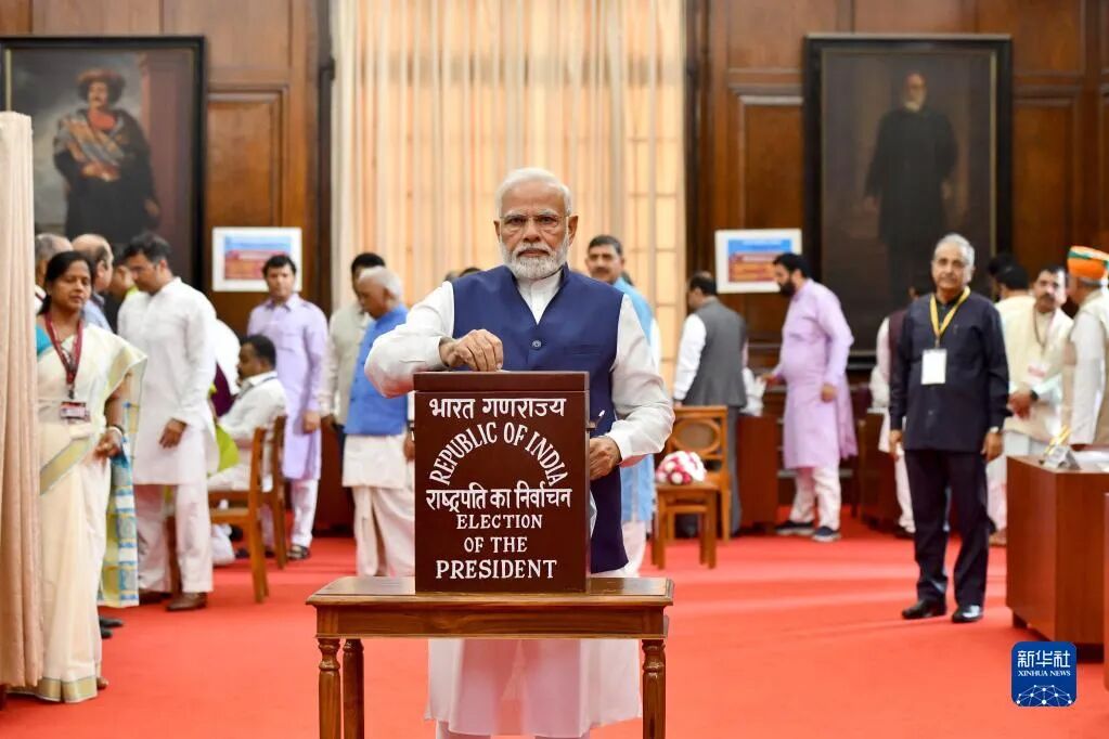 7月18日,印度总理莫迪在新德里参加总统选举投票。