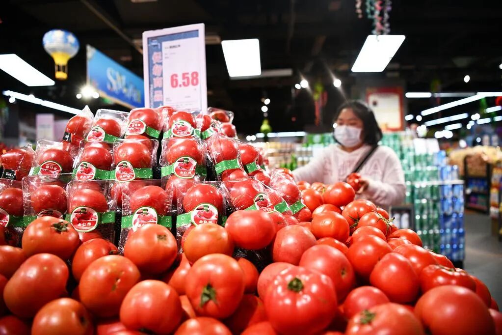 资料图:5月16日,消费者在贵州省遵义市余庆县一家超市选购蔬菜。