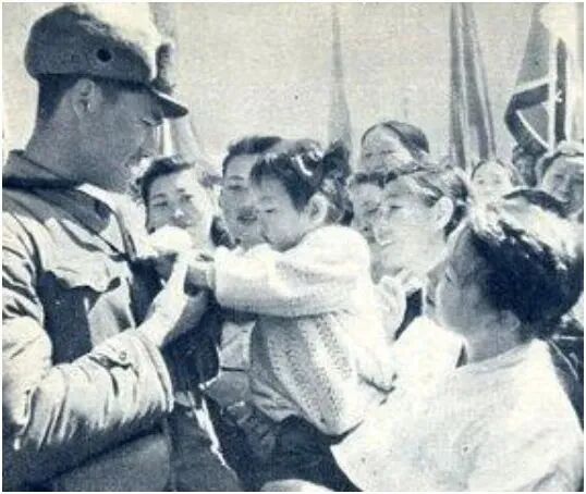 ▲朝鲜人民深情送别志愿军战士