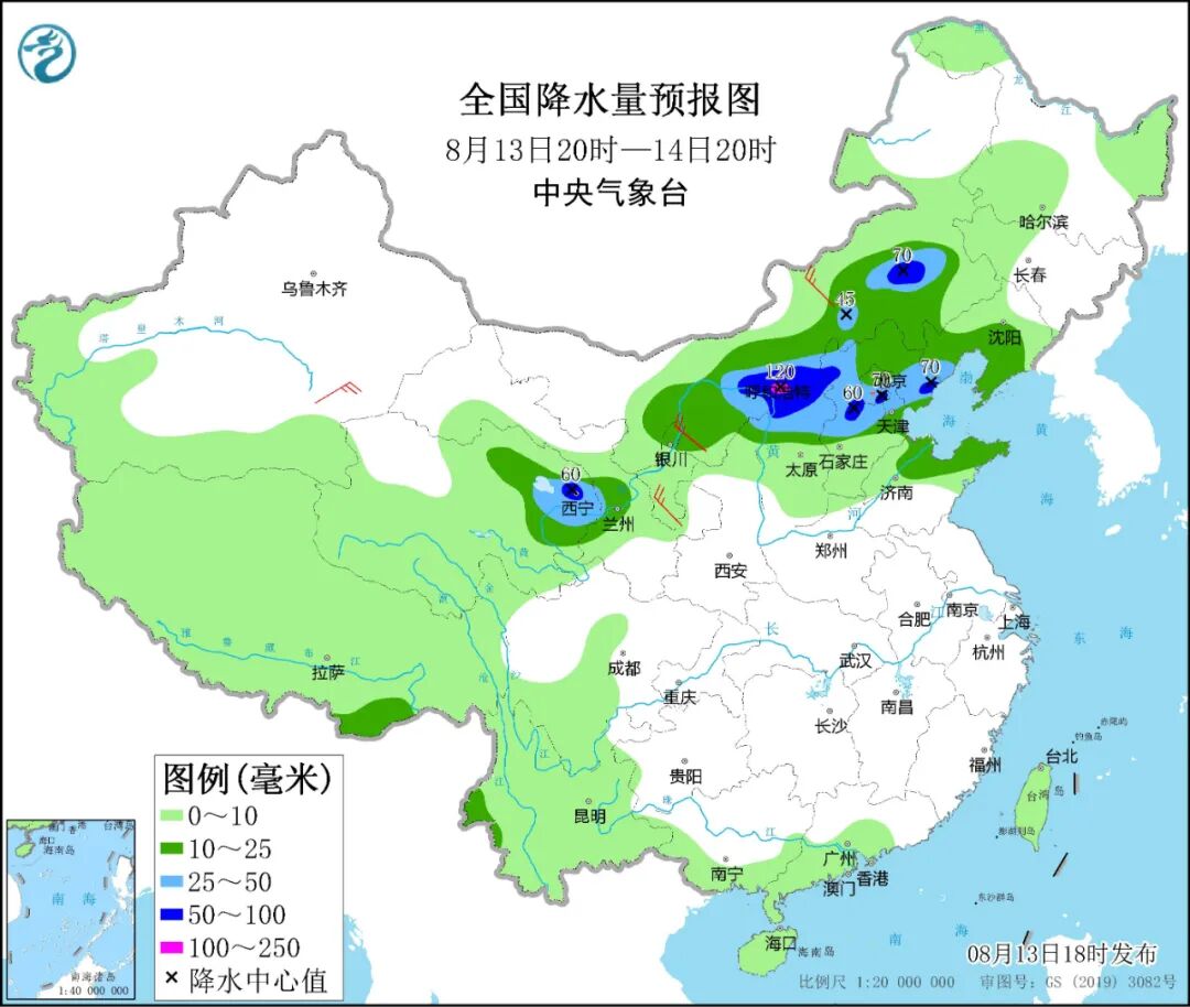 全国天气:青海东北部、甘肃西南部、宁夏北部、内蒙古中西部和东南部、陕西北部、山西北部、河北中北部、北京、天津、辽宁中西部和南部、山东北部等地部分地区有中到大雨,其中,青海东北部、内蒙古中东部、山西北部、河北中北部、北京东南部等地的部分地区有暴雨,局地大暴雨(100~120毫米)。内蒙古中西部、新疆南疆盆地、陕西北部等地部分地区有4~5级风。