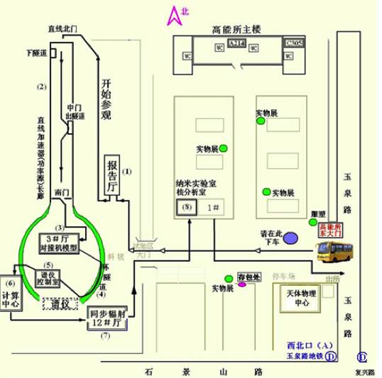 中科院高能物理研究所里的指示牌上,左下角的圆形就是北京正负电子对撞机,它的实际周长是240米。在未来,大型环形正负电子对撞机的周长将达到100千米,可以想见,那将是个多么壮观的场景。图片来源:www.ihep.cas.cn