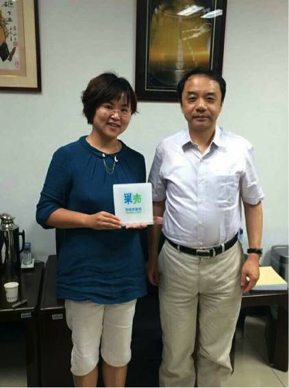 “科学人”主编吴欧与王贻芳院士。摄影/李雪