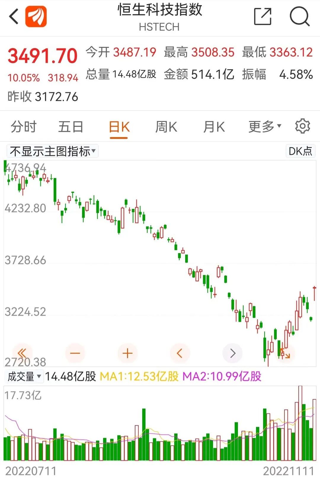 港股则是连续2周大幅反弹,今日香港恒生指数收涨7.74%,本周累计上涨7.21%;恒生科技指数更是大涨10.05%,本周累计上涨6.97%。