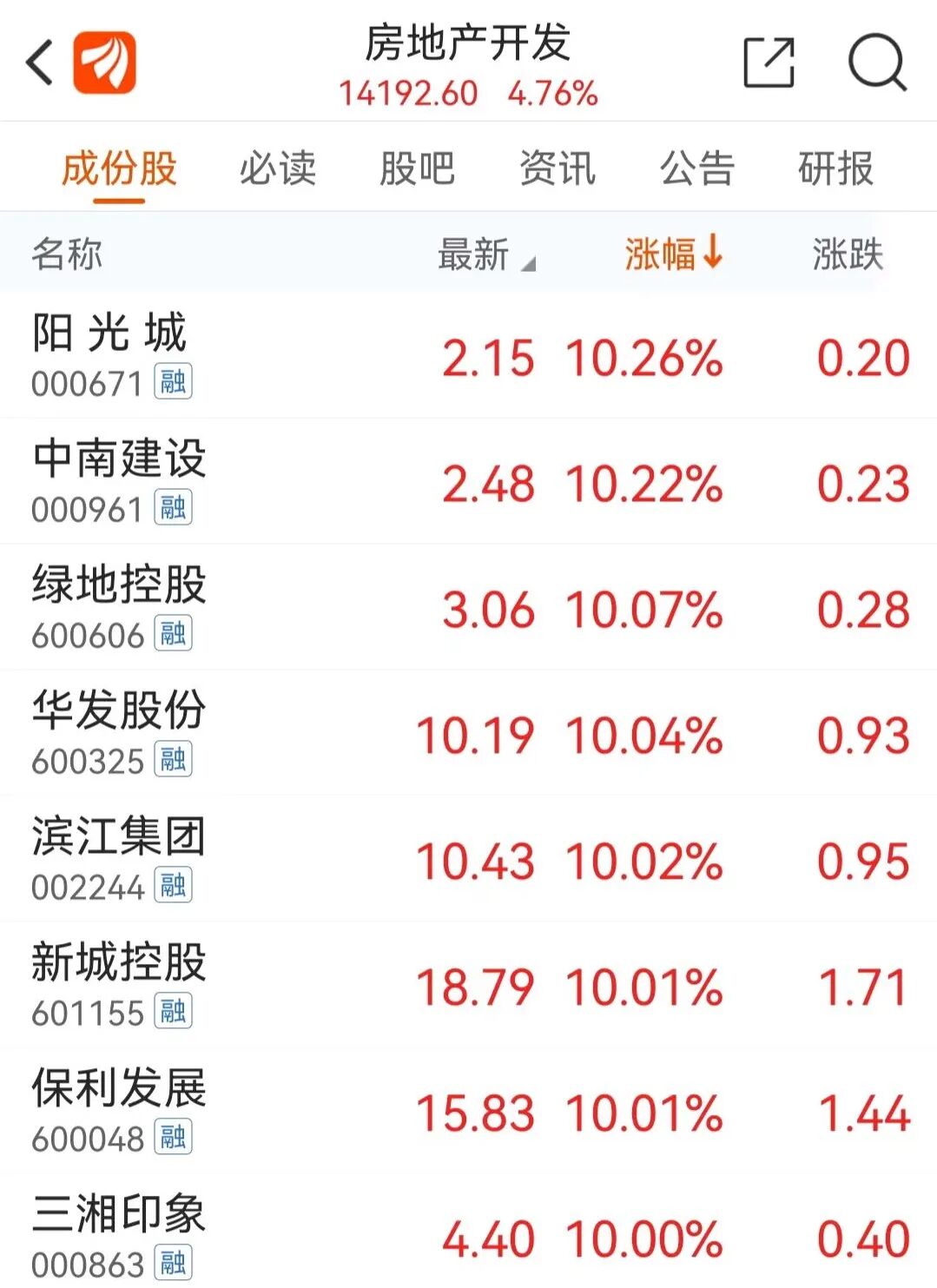 板块方面,今日领涨的无疑是房地产及其相关产业链,房地产服务、房地产开发、建筑材料、等板块涨幅居前。