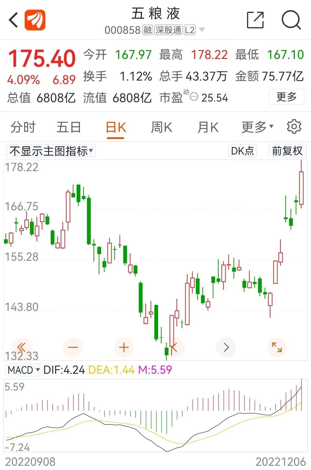 目前各地政策优化,修复后无疑是消费板块表现抢眼。今日消费中的核心板块酿酒股再度上涨,收盘大涨近2%,其中6800亿市值的五粮液大涨超4%,11月以来五粮液累计涨幅超31%。