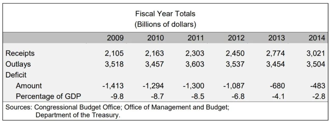 表2:2013、2014年美国财政赤字明显收窄 |