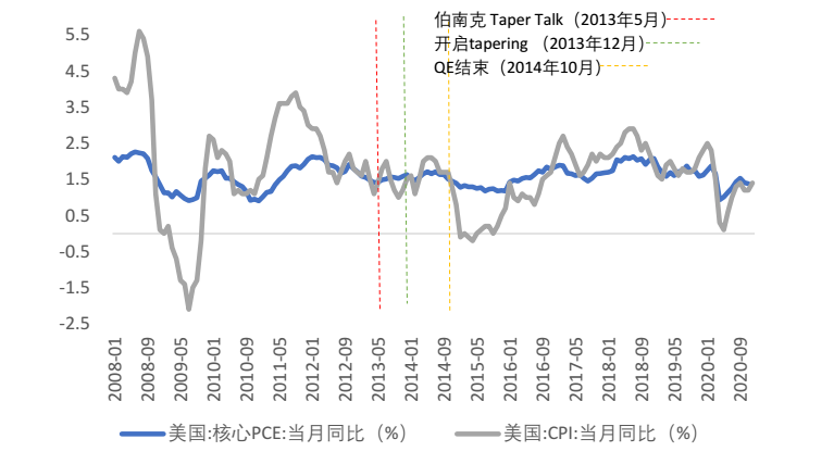 图2:2013-2014年缩减QE时的通胀水平偏低 |