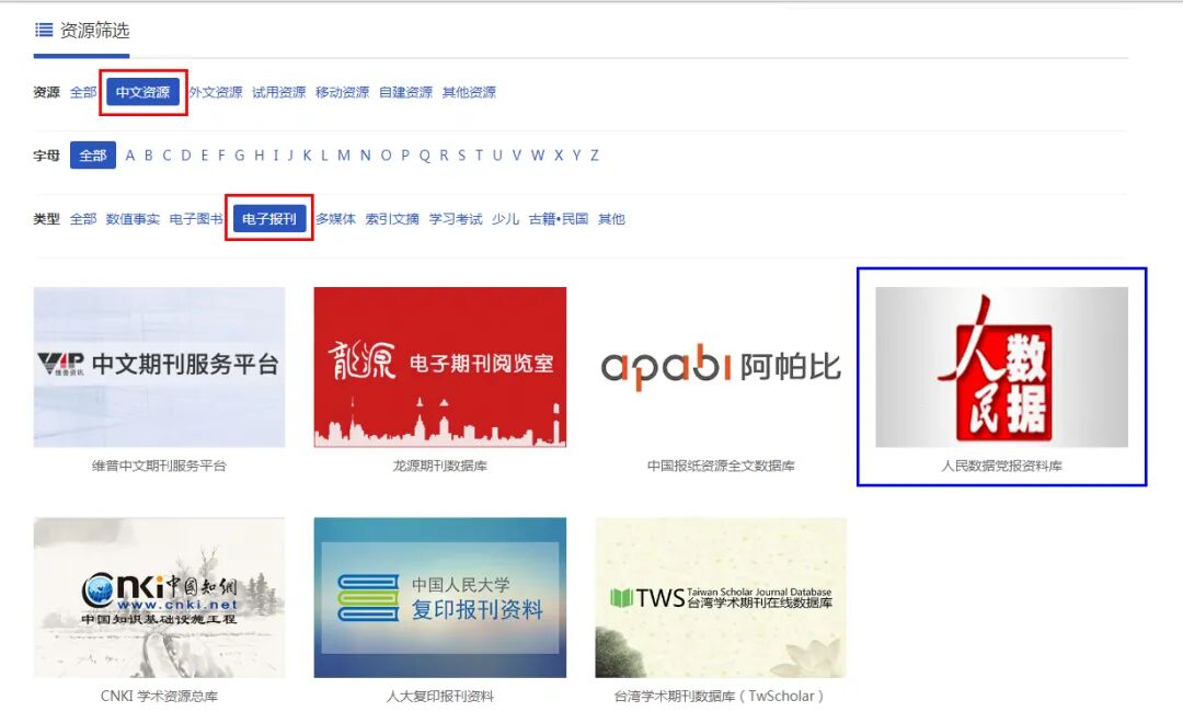 进入“人民数据党报资料库”主界面,点击进入“人民日报图文数据库”