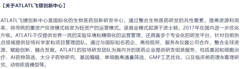 2023年1月,ATLATL飞镖极速器宣布完成数亿美元融资,由高瓴资本独家投资。双方将依托ATLATL平台,共同启动“Aseed+首航计划”,计划未来5年内完成50个前沿生命科学创新项目的概念验证及落地孵化。