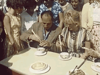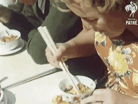 1962年,英国人甚至举办过筷子比赛,他们是这样用的。(吃不到吃不到,嗨呀好气呀!)