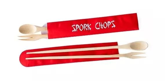 后来还有人推出了更进阶的筷子叫做Spork Chops,它的一头可以当作筷子,一头就是勺子和叉子。不过它可没有针对菜鸟们的筷子训练指南,如果不会用筷子,那就只能用一根木棍到处戳咯。