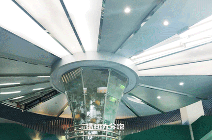 带着对游泳馆的怀念走进入口处,通顶21米高的空间,搭配空调带来的强劲凉意,倒像是博物馆避暑纳凉的标配。