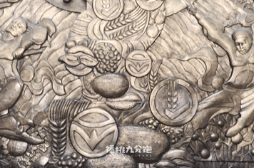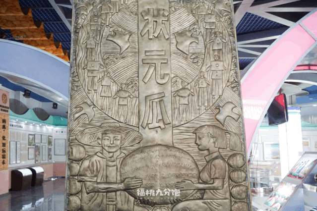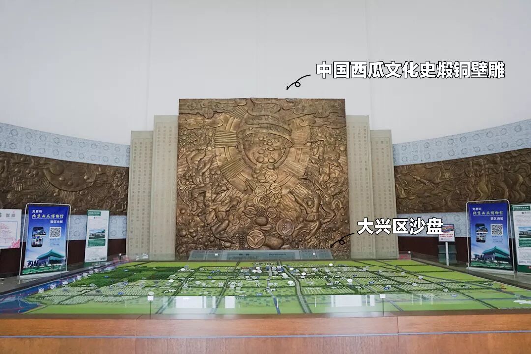 立在沙盘背后的,是一块6米高的煅铜壁雕。像所有辉煌历史的时间长河一样,这面壁雕上,描述的正是中国西瓜文化历史的底蕴,和西瓜科技的快速发展。每个被雕刻上墙的人物脸上,都展现着对于西瓜事业的无线热爱。“只有你拼搏和努力,老天才会回馈你好吃的西瓜。”