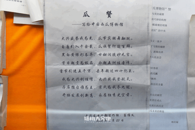 不大的展览馆,伴随着一句句吐槽,不知不觉就走完了。但还是不见大兴西瓜的真身。饱弟和饱妹,绕着博物馆外务又走了大半圈,见识了西瓜球扶手和大理石西瓜围挡,也没见着一根西瓜藤。