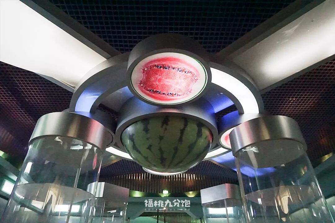 展厅的墙上装饰,也是以西瓜为主题理念,全面打造而来。