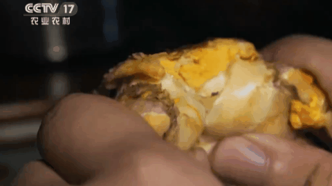 草木灰加粗盐腌制30天的儋州海咸鸭蛋,一筷子戳下去直冒红油。