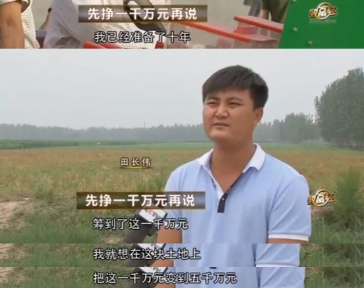 2014年的节目里,比马云先说“先挣一千万元再说”的田长伟,准备了十年,筹到了一千万元,回到老家之后,有着把一千万,变到五千万的雄心壮志。