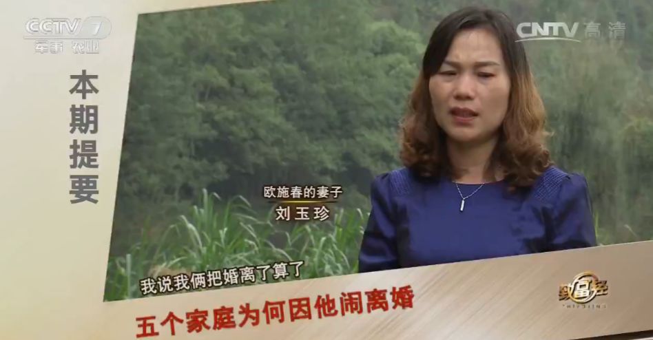 还有“五个家庭为何因他闹离婚”里,重庆市云阳县的欧施春家里人见他就要吵,还把五个家庭几乎家家闹离婚但最终,不到两年时间,年销售额就超过千万。——这就不就是当代tbv商战农村版吗?