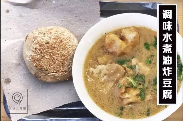传统搭配是来张糖油饼,当然也可以随自己心意,刚刚出炉从里到外透着热乎气儿的芝麻酱烧饼也很完美。一口热乎乎的烧饼,一口热乎乎的炸豆腐,这是一早上一口一口热乎乎的正能量啊!
