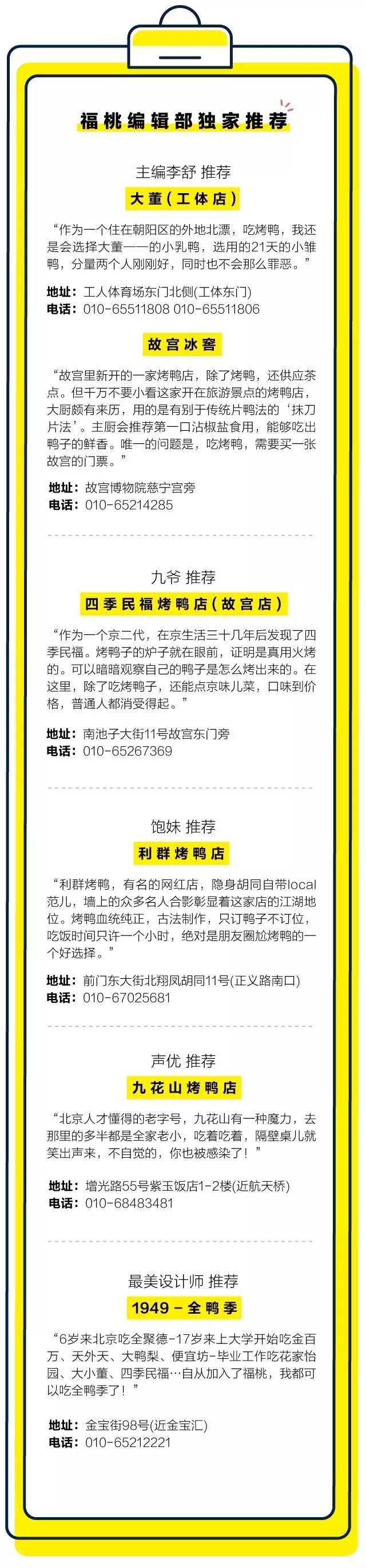 北京人民也会有自己的烤鸭隐秘名单,这些名单更像是一份族谱,从爷爷和爸爸流传到自己这一辈;有时候又像是一份失传的武功秘籍,并不想随意分享给别人;更像是自己童年的梦,有时早已残破不全: