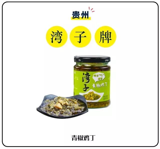 贵州诞生了宇宙级别的拌饭神器“老干妈”,不过,在这片土地上,除了“老干妈”,好吃的下饭酱太多了。本土特产的青椒鸡丁辣酱,满满都是贵州人的家乡味,仿佛吃到了遵义的青椒肉沫粉。青椒与鸡丁的相遇,注定是不平凡的,青椒的辣,辣到提神醒脑,鸡丁的嫩,嫩到直咽口水,够劲儿。