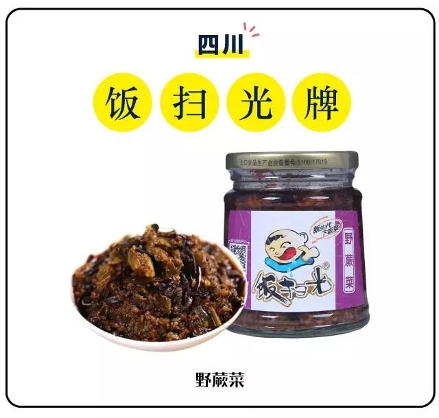 在我的四川朋友心中,能称得上下饭酱的只有两种,一种是大众情人老干妈,另一个就是本省之宝饭扫光。吃一口,米饭立刻一扫而光,这川味十足的名字起得多有食欲啊。下饭菜系列选用的食材全部来自山野珍品:野山菌、野竹笋、大头菜、木耳、野蕨菜……尤其是野蕨菜浸泡在秘制红油里,一口咬下去韧劲十足,用料也实在,一勺挖下去满满全是蕨菜。朋友说,她当年在外读书,大半个学期全靠米饭加饭扫光续命,这野蕨菜,就是她的命。