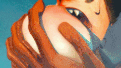 然后把这颗水蜜桃放在两手之间抱住,两手大拇指轻轻用力,就自然地把皮往两边扯开了。