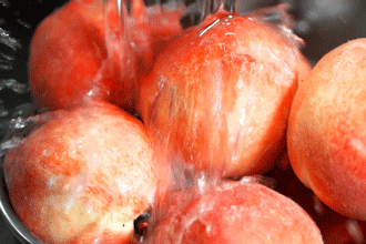 能一下把皮剥开的自然是王者,这样的人真的懂吃桃,先给水蜜桃按摩一番,轻轻刮它的身体,然后用刀,在水蜜桃凹下去的那条线那,轻轻划上一刀。