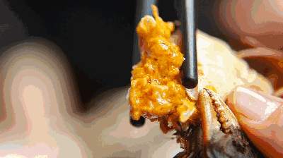 拆蟹粉的最高境界,当然要数秃黄油。秃黄油中的“秃”,其实不是秃头的“秃”,苏州话,代表“只有”。