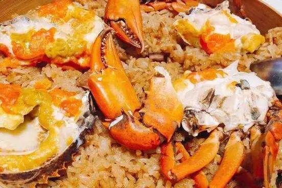 福建当地有道经典食物叫红蟳饭,用火腿鸭肉猪肚鸭胗虾米香菇竹笋爆炒糯米饭,放上拆开的红蟹,包上荷叶上锅蒸,配料的油脂香混着荷叶的清香和螃蟹的鲜香,滋味美好。
