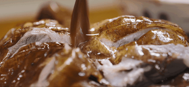 你看这烧鹅,皮酥肉嫩,咸鲜微甜——