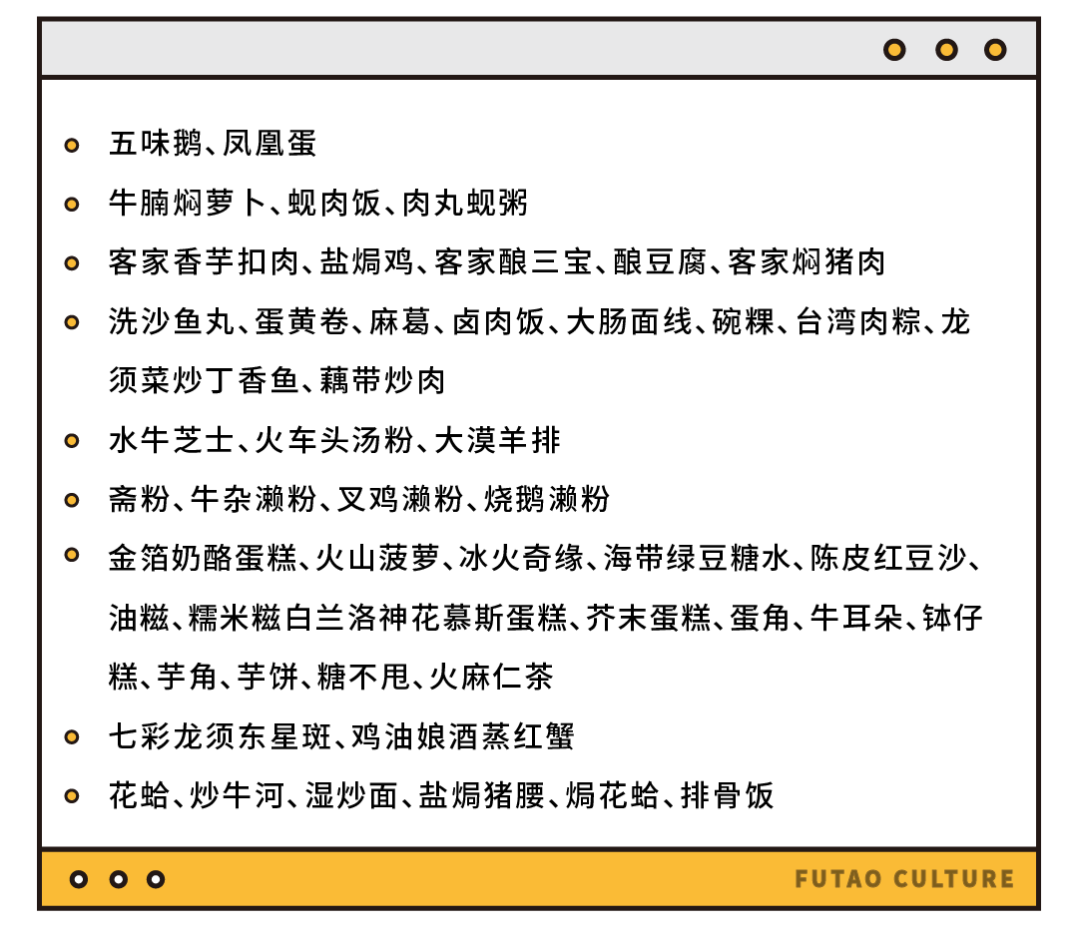 不管你是想吃卤肉饭龙须菜丁香鱼红面线,还是钵仔糕卤大肠碗粿,甚或是水牛芝士火车头汤粉大漠羊排,统统都给安排上!