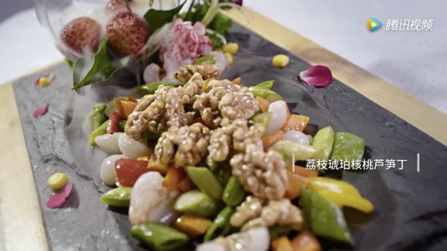 荔枝片皮鸡,灵感来源或许是北京烤鸭。