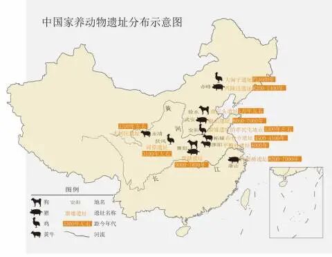 总之,根据现有的动物考古发现,中国家养动物开始出现的时间和种类依次为,距今1万年左右出现狗,距今9000年左右出现猪,距今5000多年左右出现绵羊,距今4000多年左右出现黄牛,距今3700多年左右出现马,距今3600年左右出现鸡。