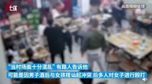 从视频可以清晰地看到,在该烧烤店,不少顾客在堂食,一名男子走向靠门一桌的女生,伸手摸白衣女生,女生将其手臂推了回去。双方随后有言语争吵,男子开始揪住白衣女生殴打,一起吃饭的两位女生去帮助同伴,被更多的男子围上来殴打,一直从屋内打到屋外,持续数分钟。